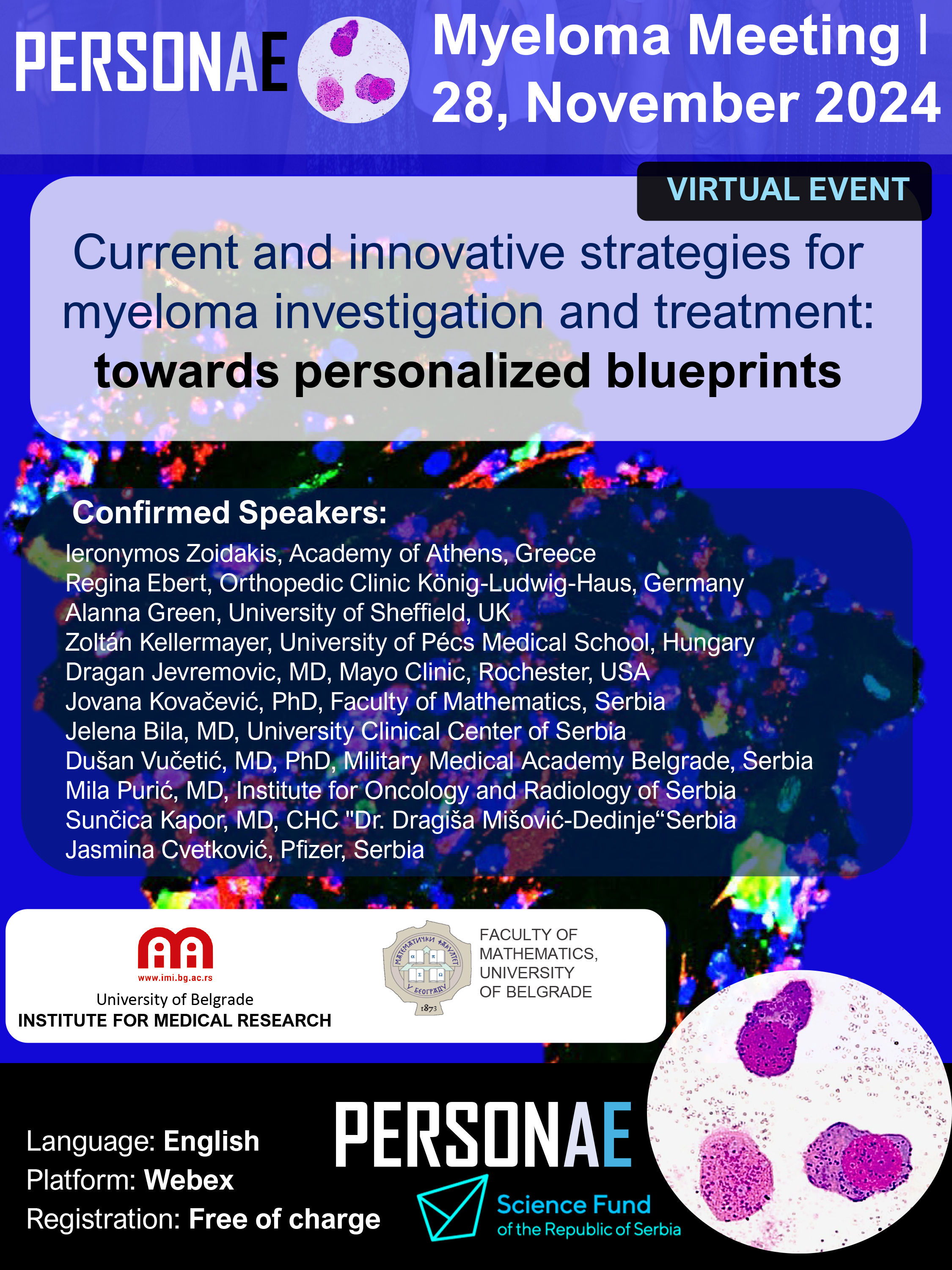 The PERSONAE Virtual Meeting 2024 aims at promoting the education and training of young basic researchers and clinicians. This Meeting is conceived to boost awareness on multiple myeloma disease and urgent need for precise medicine. Specifically, the Meeting aims at providing: